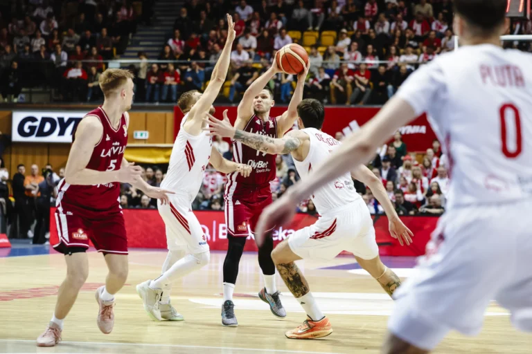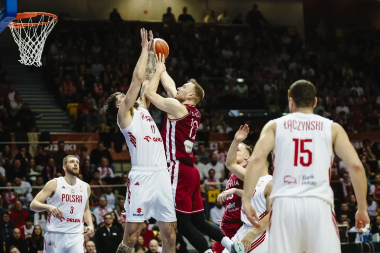 Latvijas izlase 01.marts, 23:42 Sliktais sākums noved Latviju pie vēl viena zaudējuma Polijai 2027. gada Pasaules kausa kvalifikācijas turnīra spēlē Latvijas izlase svētdienas vakarā izbraukumā ar rezultātu 72:92 z...