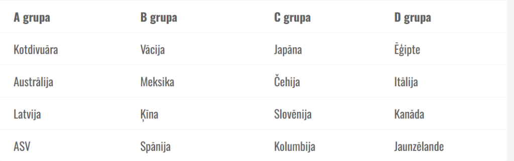 Astotdaļfinālā būs jāspēlē ar kādu no B grupas komandām (Vācija, Meksika, Ķīna, Spānija).