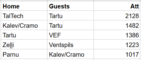 Līdz šim apmeklētākās spēles.