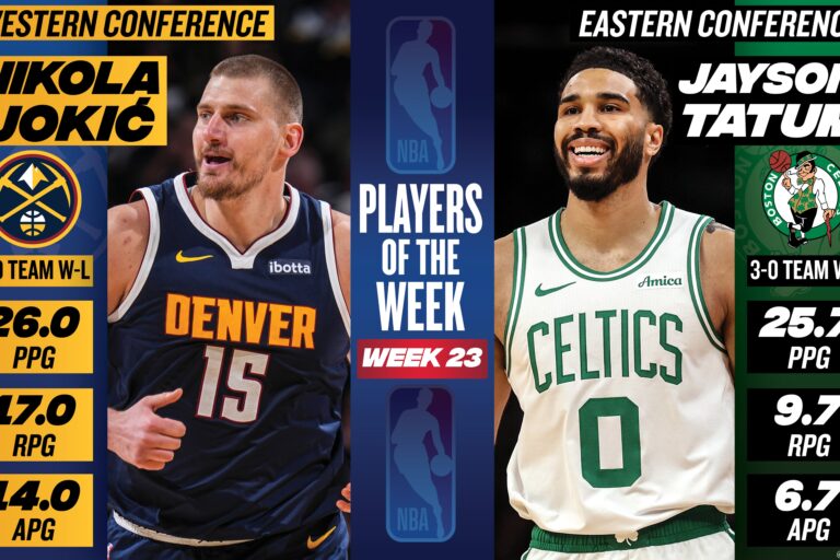 NBA 30.marts, 23:13 Fantastiskais Jokičs un nesen atgriezušais Teitums – pagājušās nedēļas labākie NBA paziņojusi, ka marta pēdējā pilnajā nedēļā labāko sniegumu demonstrējuši Nikola Jokičs un Džeisons Teitums. Jokiča v...