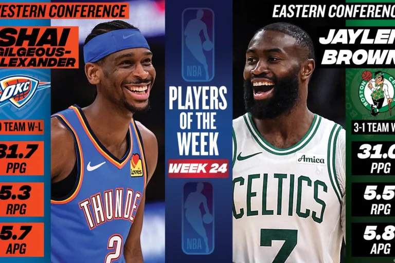 NBA 07.aprīlis, 13:28 “Thunder” un “Celtics” spēlētāji dominē iepriekšējā nedēļā Oklohomsitijas "Thunder" līderis Šejs Gildžess-Aleksandrs un Bostonas "Celtics" viens no galvenajiem balstiem Džeilens B...