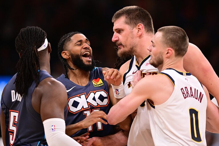 NBA 04.marts, 16:04 Dorts par incidentu ar Jokiču: Es pārkāpu robežas Pagājušajā nedēļā aizraujoša izvērtās spēle starp Oklohomsitijas "Thunder" un Denveras "Nuggets". Uzvarētājs noskaidrojā...