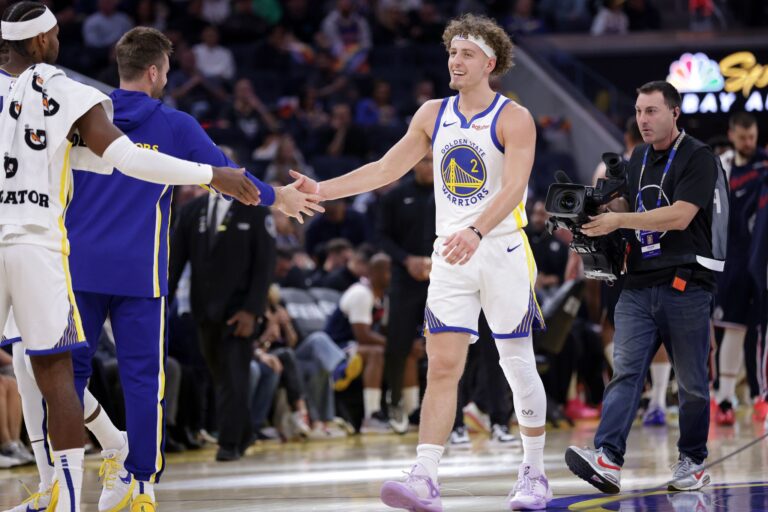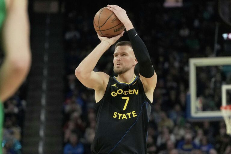 NBA 23.februāris, 01:20 “Warriors” bez Porziņģa nomētā “Nuggets” (video) Svētdienas agrajā NBA spēlē Goldensteitas "Warriors" nevarēja palīdzēt Kristaps Porziņģis, bet tas netraucēja pārspēt De...