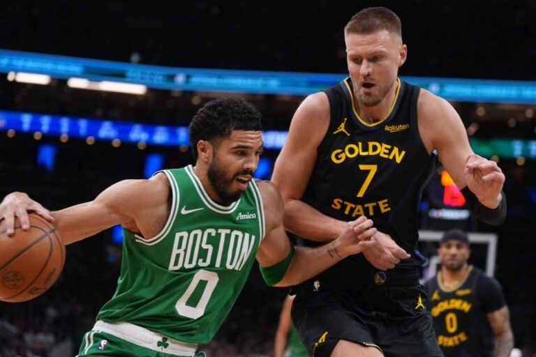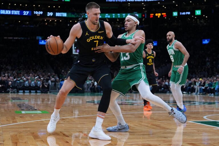 NBA 19.marts, 11:04 Porziņģis redz progresu un jūtas apmierināts Kristaps Porziņģis pēc Goldensteitas "Warriors" zaudējuma Bostonas "Celtics" komentēja atgriešanos Bostonā un paša vesel...